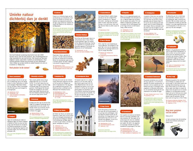 - Op de achterkant vind je allerlei tips voor wandel- en fietsroutes.