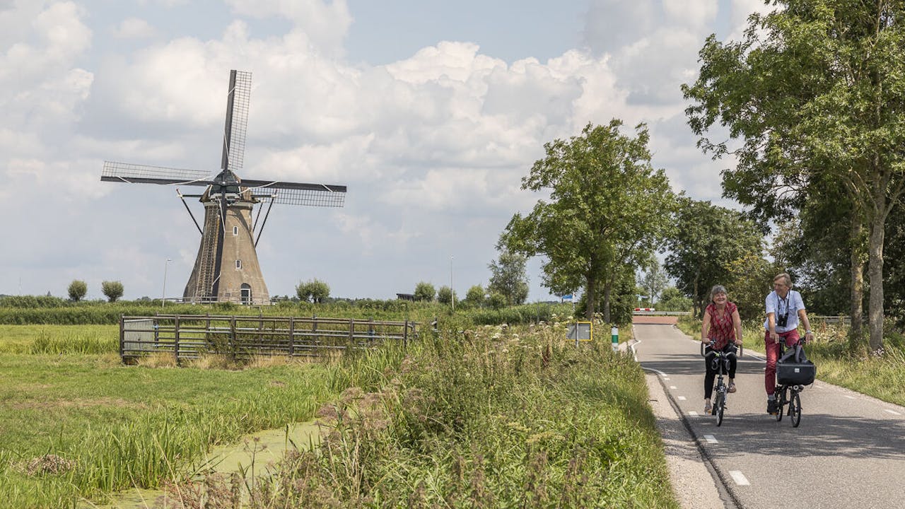 Deze fietsroute combineert twee monumentale steden in het groene hart van Holland. Van de gemoedelijke ‘zilverstad’ Schoonhoven fiets je langs het idyllische riviertje de Vlist en de Reeuwijkse Plassen naar Gouda, bekend van de Goudse kaas, het schitterende stadhuis en de machtige Sint-Janskerk. Op de terugweg ontdek je het weidse, grasgroene landschap van de Krimpenerwaard. Veel fietsplezier!